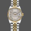 Rolex Datejust 179173 Silver Jubilee Diamond Dial Fluted Bezel 26MM Lady Replica Watch,Stainless steel oyster case 26.0 mm in diameter.Yellow gold fluted bezel. Scratch resistant sapphire crystal with cyclops magnifier.Silver Jubilee Dial with Diamond Hour Markers.Date calendar at 3 o’clock aperture. Stainless steel yellow gold jubilee bracelet with a hidden clasp.