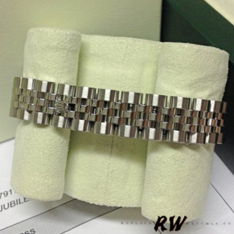 Rolex Datejust 179174 Black Index Dial Fluted Bezel 26MM Lady Replica Watch, 26mm Stainless steel oyster case in diameter. White gold fluted bezel. Scratch resistant sapphire crystal with cyclops magnifier.Black Dial with Index Hour Markers. Date calendar at 3 o’clock aperture. Stainless steel jubilee bracelet with a hidden clasp.