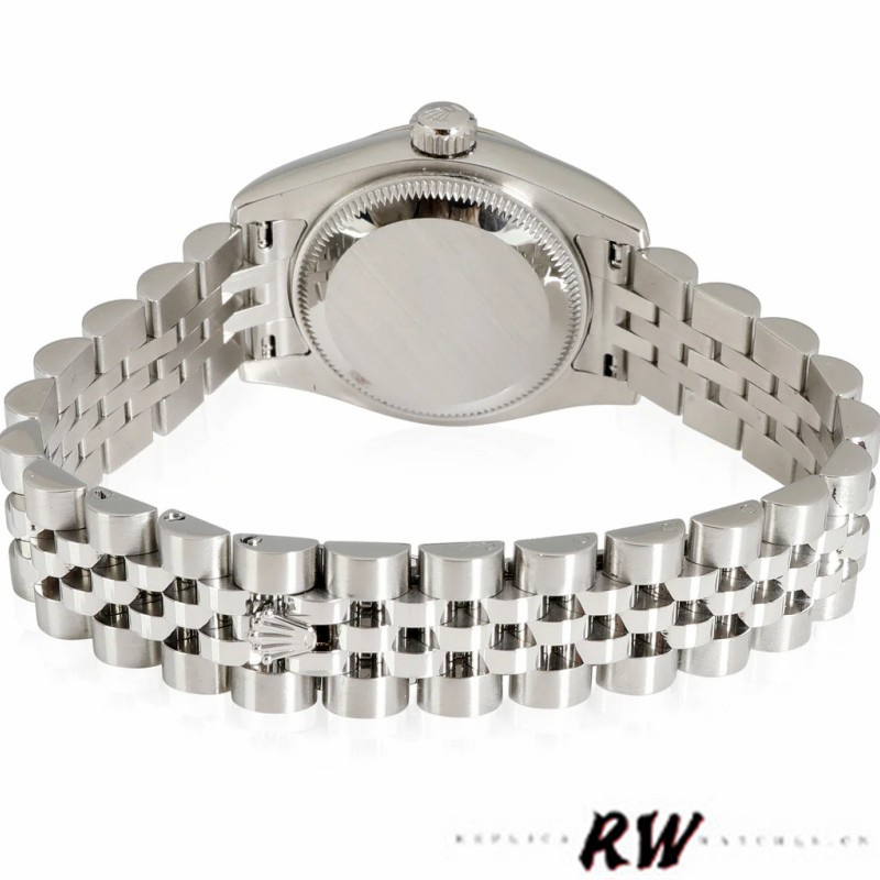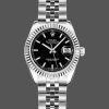 Rolex Datejust 179174 Black Roman Dial Fluted Bezel 26MM Lady Replica Watch, 26mm Stainless steel oyster case in diameter. White gold fluted bezel. Scratch resistant sapphire crystal with cyclops magnifier.Black Dial with Roman Numeral Markers. Date calendar at 3 o’clock aperture. Stainless steel jubilee bracelet with a hidden clasp.