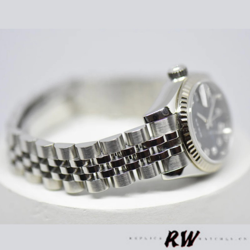 Rolex Datejust 179174 Jubilee Blue Diamond Dial Fluted Bezel 26MM Lady Replica Watch, 26mm Stainless steel oyster case in diameter. White gold fluted bezel. Scratch resistant sapphire crystal with cyclops magnifier.Jubilee Blue Dial with Diamond Hour Markers. Date calendar at 3 o’clock aperture. Stainless steel jubilee bracelet with a hidden clasp.