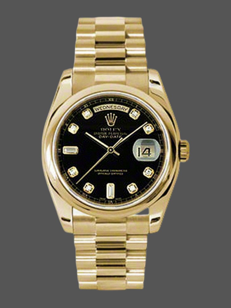 Rolex Day-Date 118208 Black Diamond Dial 36mm Unisex Replica Watch