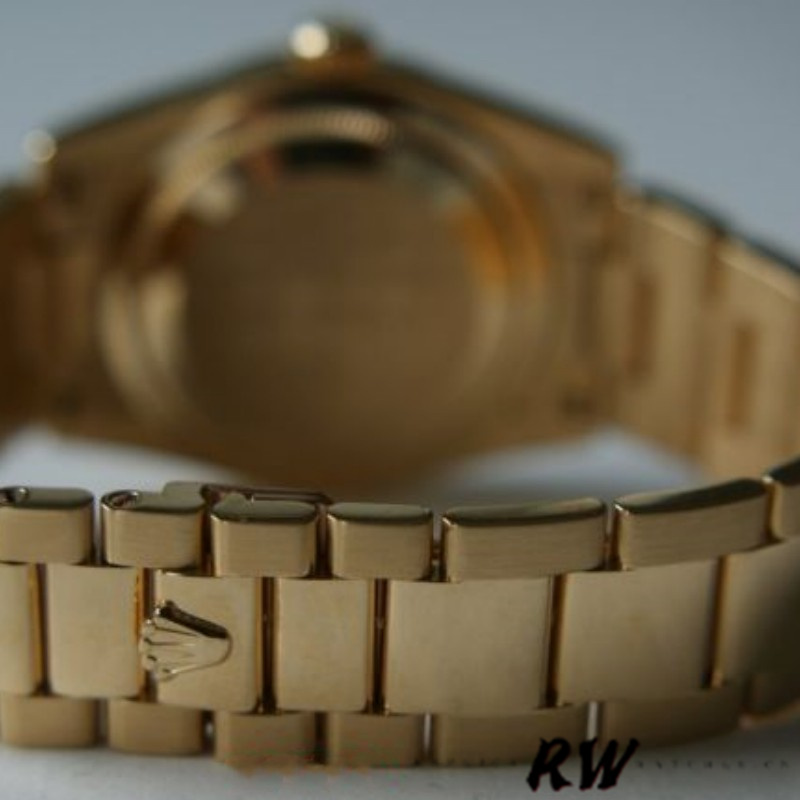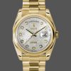 Rolex Day-Date 118208 Silver Diamond Jubilee Dial 36mm Unisex Replica Watch. 36mm yellow gold case with a yellow gold president bracelet. Fixed domed yellow gold bezel. Jubilee dial in silver set with diamonds, with spanish days in place of the hour twelve, Date display at the 3 o’clock position.polished bezel, fitted to a yellow gold president bracelet. Scratch resistant sapphire crystal. Screw down crown. Solid case back.