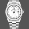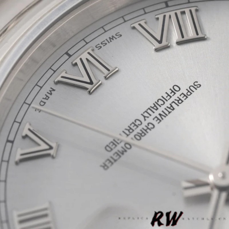 Rolex Day-Date 118209 Silver Roman Numerals Dial Automatic 36mm Unisex Replica Watch.36mm white gold oyster case in diameter. White gold smooth bezel. Scratch resistant sapphire crystal with cyclops magnifier. Silver dial with raised roman numeral hour markers. Date calendar at 3 o’clock aperture. Day window at 12 o’clock aperture. White gold oyster bracelet with hidden clasp. Fits 7 3/4″ wrist.