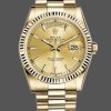 Rolex Day-Date 118238 Diamond Meteorite Dial 36mm Unisex Replica Watch has a Yellow Gold 36 mm Round Case with Screw Down Crown and a Yellow Gold Fluted Bezel. Meteorite set with diamonds Dial with yellow gold-tone hands and Diamonds hour markers. Date display at 3 o’clock; day display at 12 o’clock.Scratch resistant sapphire crystal. Screw down crown. Solid case back. The reliable Yellow Gold Oyster Bracelet will look great on your wrist.