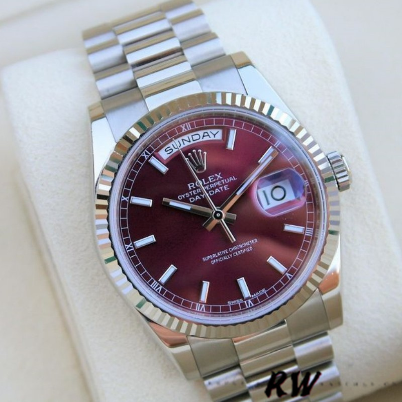 Rolex Day-Date 118239 Cherry Red Dial Fluted Bezel 36mm Lady Replica Watch
