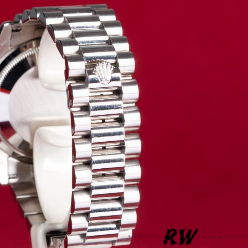 Rolex Day-Date 118239 Diamond Lapis Lazuli Blue Dial 36mm Unisex Replica Watch.36mm white gold case with white gold fluted bezel.Natural blue Lapis Lazuli semi prcious stone dial with diamonds set hour marker. 8 round and 2 baguette cut diamond hour markers. Date display at 3 o’clock position & day display at 12 o’clock position. with a cyclops magnifying lens. White gold President bracelet with white gold hidden fold over clasp. Sapphire crystal. White gold case back.Will fit up to 6.5-Inch wrist.
