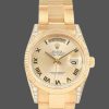 Rolex Day-Date 118338 Yellow Gold Champagne Diamonds Dial 36mm Unisex Replica Watch features a 36mm yellow gold case with a stylish round fluted bezel with diamond lugs surrounding a champagne diamond dial on a yellow gold President bracelet with folding buckle.Day of the week window displayed at the 12 o’clock position.Date window displayed at the 3 o’clock position with a cyclops magnifying lens.Scratch resistant sapphire crystal. Screw down crown.
