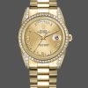 Rolex Day-Date 118388 Diamond Bezel Chocolate Brown Dial 36MM Unisex Replica Watch features a 36mm Diamond set yellow gold case fitted with Chocolate Brown Dial Index Hour Markers, Diamond-encrusted lugs, a matching diamond bezel, hour and minute hands, Scratch resistant sapphire crystal with cyclops magnifier. Day of the week window displayed at the 12 o’clock position.Date window displayed at the 3 o’clock position.The elegantly designed with Concealed Folding Crownclasp will look great on your wrist.