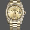Rolex Day-Date 118388 Yellow Gold Bull’s Eye Brown Dial 36mm Unisex Replica Watch features a 36mm Diamond set yellow gold case fitted with Bull’s Eye Brown Dial Set with Diamonds, Diamond-encrusted lugs, a matching diamond bezel, hour and minute hands, Scratch resistant sapphire crystal with cyclops magnifier. Day of the week window displayed at the 12 o’clock position.Date window displayed at the 3 o’clock position.The elegantly designed with Concealed Folding Crownclasp will look great on your wrist.