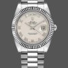 Rolex Day-Date 218239 Diamond Black Dial White Gold 41MM Mens Replica Watch, has a 41mm White gold case that has a solid case back,a screw-down crown, and a fluted white gold bezel.Scratch resistant sapphire crystal with Cyclops magnifier.Black Dial with Diamond Hour Markers,Date Window Displayed at 3 O’Clock,Day Window Displayed at 12 O’Clock,White gold three-piece-link Presidential bracelet with a fold-over clasp.