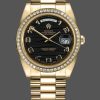 Rolex Day-Date 218348 White Roman Dial 41MM Mens Replica Watch,has a 41mm Yellow gold case that has a solid case back with Screw Down Crown and Diamonds Bezel.Scratch resistant sapphire crystal with Cyclops magnifier.White Dial with Roman Numerals Hour Markers,Date Window Displayed at 3 O’Clock,Day Window Displayed at 12 O’Clock,Yellow gold three-piece-link Presidential bracelet with a fold-over clasp.