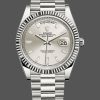 Rolex Day-Date 228239 Green Roman Dial Fluted Bezel 40mm Mens Replica Watch, featuring a 40mm White Gold case, solid case back with screw-down crown and fluted bezel. Scratch-resistant sapphire crystal with Cyclops magnifying glass.Green Dial Roman Numeral Hour Markers, date window at 3 o’clock, day of the week window at 12 o’clock,White Gold three-piece presidential bracelet with deployant clasp.