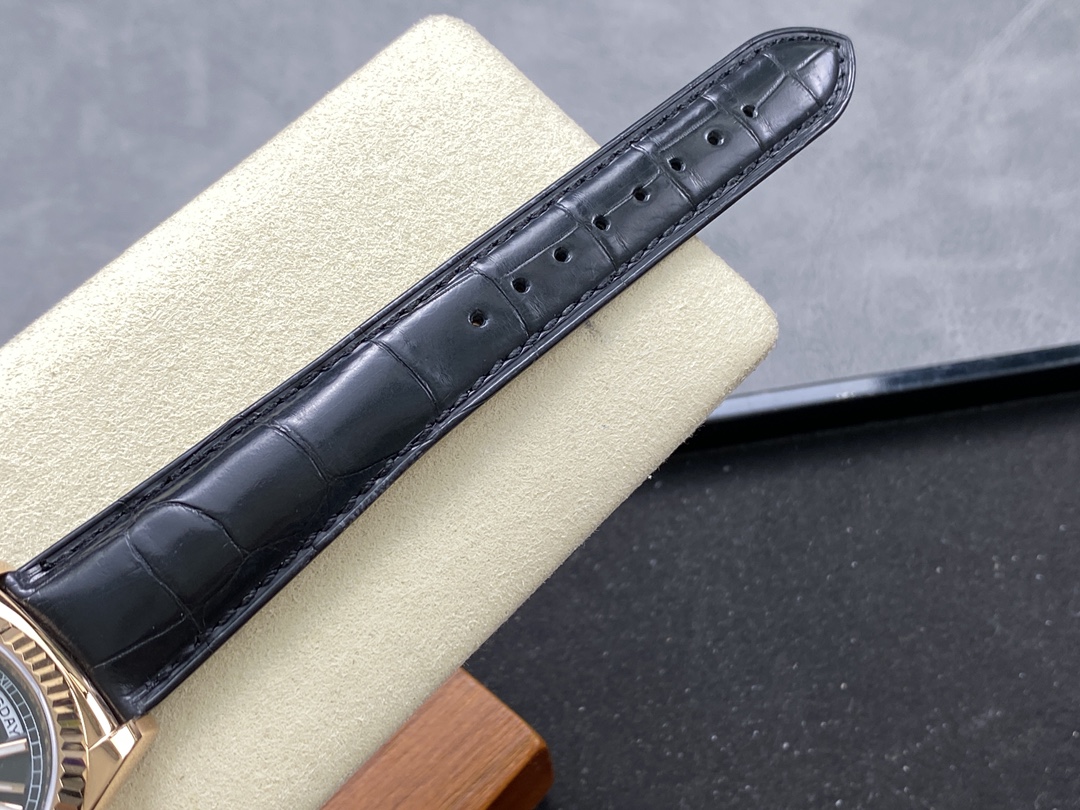 Rolex Day Date 36 Everose Gold Black Dial 118135 0063 Leather Watch