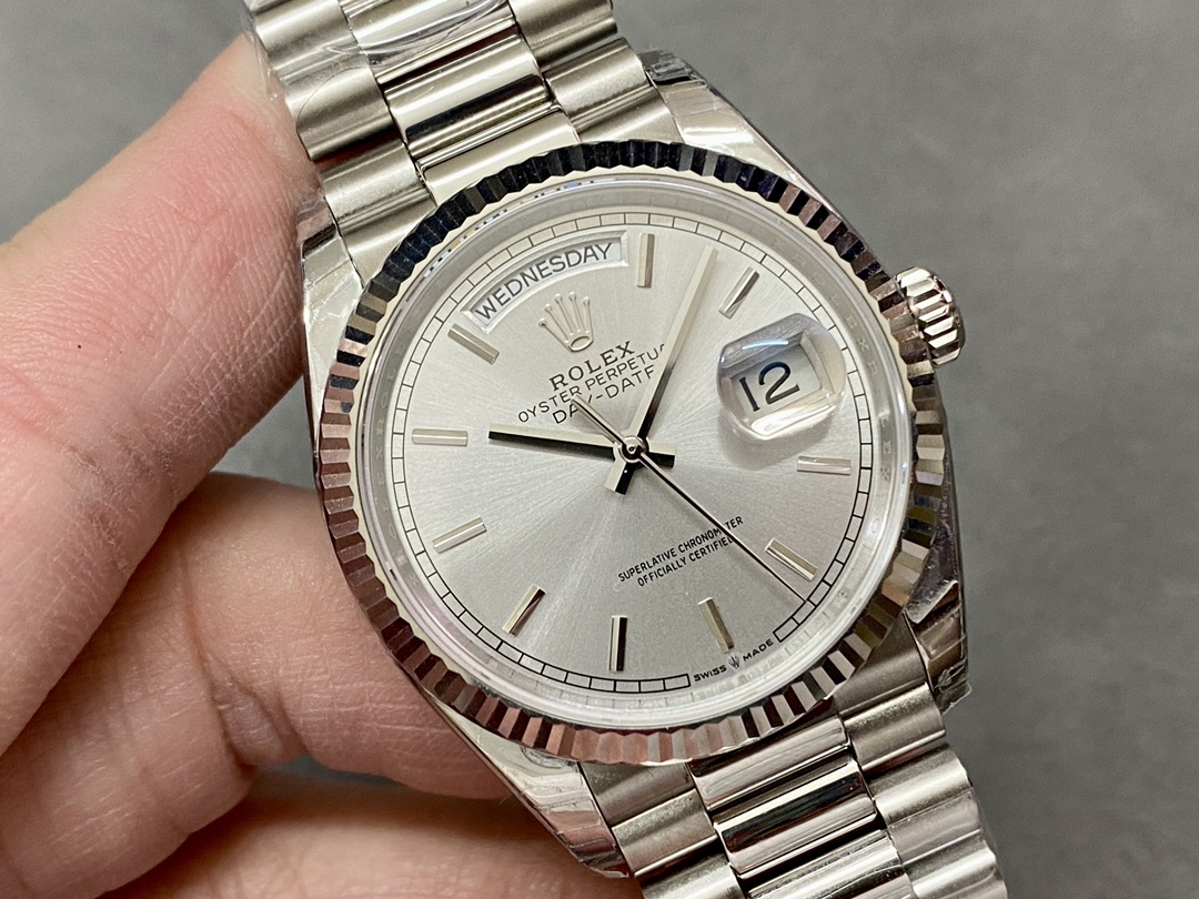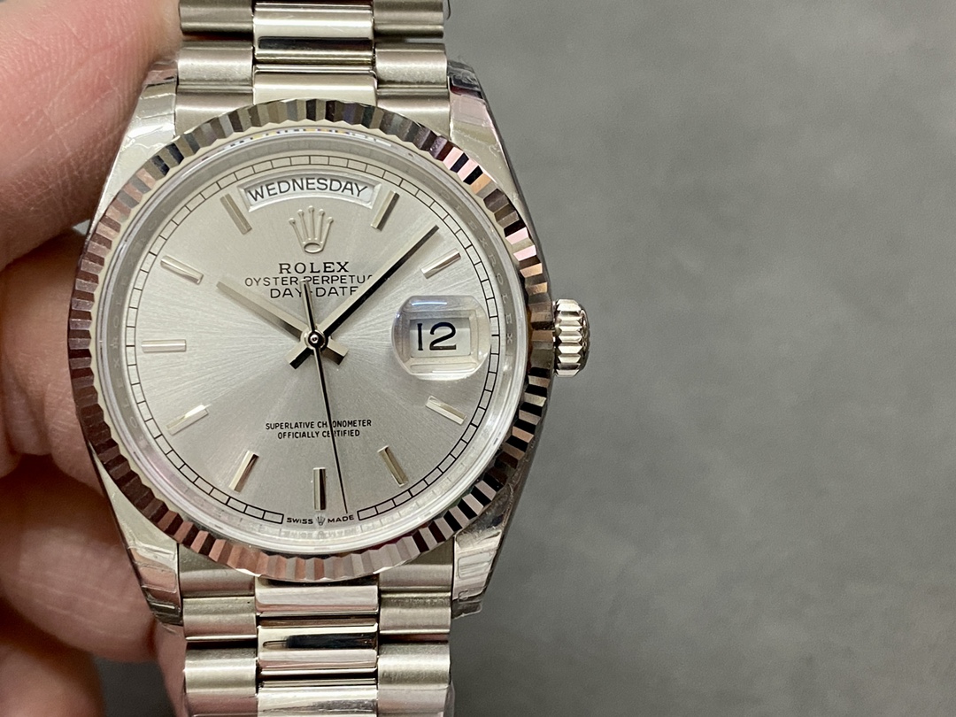 Rolex Day Date 36mm Platinum White Gold Silver Index 128236 0001