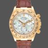 Rolex Daytona 116518 Yellow Gold Dark MOP Diamonds Dial 40mm Mens Replica Watch.40mm yellow gold case.Stunning Dark Mother of Pearl Dial with yellow gold surround Diamond hour markers with yellow gold sub register hands. High quality brown strap with yellow gold style flip-lock clasp for the track and the concert hall.