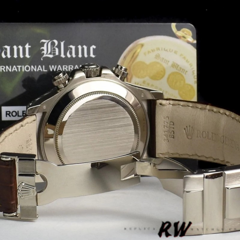 Rolex Daytona 116519 Grey Dial Brown Leather strap 40mm Mens Replica Watch. The 40mm white gold case Rolex watch has a Triplock winding crown and two screw-down chronograph pushbuttons with fixed domed tachymeter bezel and a scratch-resistant sapphire crystal. For the fans of leathered watches,this racing Daytona has a brown embossed crocodile strap with a folding Oysterlock safety clasp for a perfect fit.
