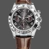 Rolex Daytona 116519 White Gold Racing Dial Brown Leather strap 40mm Mens Replica Watch.40.00mm case size,the rare silver and black ‘Racing Dial’ with popping red accents. Black Arabic Numerals, Red Dial Accents, Red Subsidiary Seconds Hand and Small Chronograph Hands.White Gold Tachymeter Bezel, Chronograph Functions, Center Sweep Red Chronograph Seconds Hand, Sapphire Crystal.Brown alligator Leather strap with white gold folding clasp.