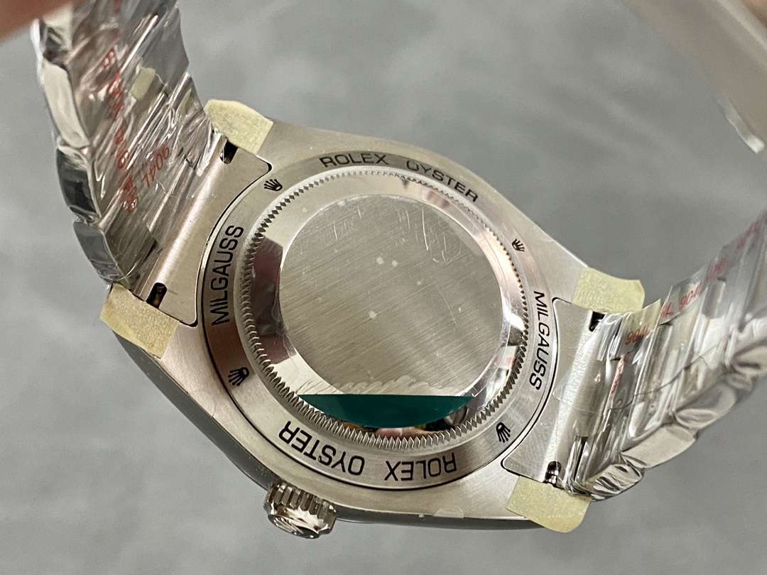 Rolex Milgauss 116400GV Stainless Steel Black Dial 40MM Mens Replica Watch,40MM Stainless steel case in diameter. Stainless steel smooth domed bezel. Scratch resistant green sapphire crystal. Black dial with luminous hands and hour markers. Orange lighing-bolt second hand. Stainless steel oyster bracelet with flip-lock clasp.