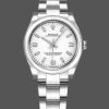 Rolex Oyster Perpetual 177200 Silver Maxi Arabic Dial 31mm Lady Replica Watch, 31mm Stainless steel oyster case in diameter. Stainless steel smooth domed bezel. Scratch resistant sapphire crystal. Silver Dial with Maxi Arabic Dial Markers. Stainless steel oyster bracelet with a fold over clasp.