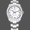 Rolex Oyster Perpetual 177200 White Arabic Dial Oyster Bracelet 31mm Lady Replica Watch,31mm Stainless steel oyster case in diameter. Stainless steel smooth domed bezel. Scratch resistant sapphire crystal. White Dial with Polished stainless steel Domed Bezel. Minute markers around outer rim. Stainless steel oyster bracelet with a fold over clasp.