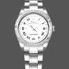 Rolex Oyster Perpetual 177210 Stainless Steel White Dial 31mm Lady Replica Watch has a Stainless Steel 31 mm Round Case with Screw Down Crown and a Engine Turned Bezel Bezel. White Dial with Engine Turned Bezel,The reliable Stainless Steel Oyster Bracelet will look great on your wrist.