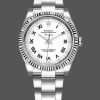 Rolex Oyster Perpetual Air-King 114234 White Diamond Dial 34mm Unisex Replica Watch.Stainless steel case 34.0 mm in diameter. White dial with silver-tone hands and diamond and Roman numeral hour markers. Minute markers around the outer rim. White gold fluted bezel. Scratch resistant sapphire crystal. Stainless steel oyster bracelet with oysterlock clasp. Fits 7 1/4″ wrist.