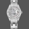 Rolex Pearlmaster 80319 Silver Diamond Dial 29MM Lady Replica Watch,29mm white gold oyster case in diameter. White gold bezel set with diamonds. Scratch resistant sapphire crystal with cyclops magnifier. Silver dial with diamond hour markers. Date calendar at 3 o’clock aperture. White gold Pearlmaster bracelet with hidden clasp.