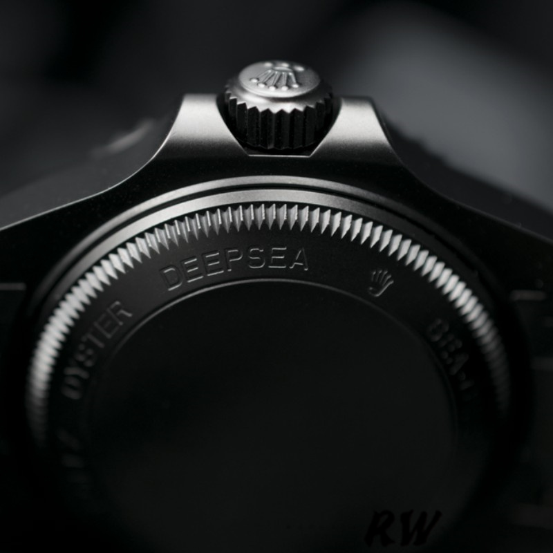 Rolex Sea-Dweller Deepsea 116660 PVD/DLC Coated Stainless Steel D-Blue Dial 44MM Mens Replica Watch has a Stainless Steel with DLC / PVD Coating 44 mm Round Case with Screw Down Crown and a Ceramic Bezel. Custom D-Blue dial with luminous dots hour markers. Engraved 60 Minute Scale and Graduations on Bezel,Numerals Date window with magnifying bubble at 3 o’clock, sapphire crystal, Unidirectional Rotating Bezel, Stainless Steel with DLC / PVD Coating Oyster Bracelet will look great on your wrist.
