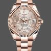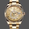 Rolex Sky-Dweller 326938 Yellow Gold Black Dial 42mm Mens Replica Watch,42mm yellow gold case, screw-down back, screw-down crown, fluted bezel with bidirectional rotatable Rolex Ring Command, scratch-resistant sapphire crystal with cyclops lens over the date and double anti-reflective coating, black dial, index hour markers with Chromalight,Second time-zone displayed via off-center rotating disc, Saros annual calendar with date at 3 o’clock and month indicated in discrete apertures at each of the 12 hour marks, Oyster bracelet with flat three-piece links, folding Oysterclasp buckle with Easylink comfort extension link.