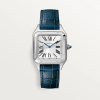 This Santos-Dumont model is both eye-catching and classic, rendered in stainless steel with a blue alligator strap. It is powered by a quartz movement.