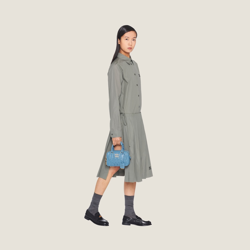 A luxurious matelassé motif reinterprets the classic silhouette of the Arcadie bag through its three-dimensional, textured, and extremely sophisticated effect. The lettering logo on the front, which echoes the different metallic finishes, stands out against the refined artisan-crafted motif with an iconic and immediately recognizable touch. The dynamic, compact and elegant lines and the zipper closure with lock contribute to the versatile, feminine, and modern design of the bag.