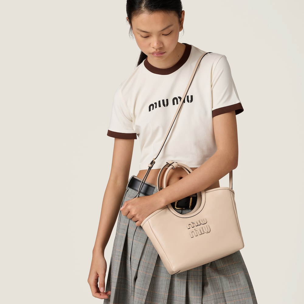Minimalist lines, cosmopolitan style and fine leather are the key words behind this new IVY leather bag. The lettering logo respects the refined design and also adds an iconic note to the bag.
