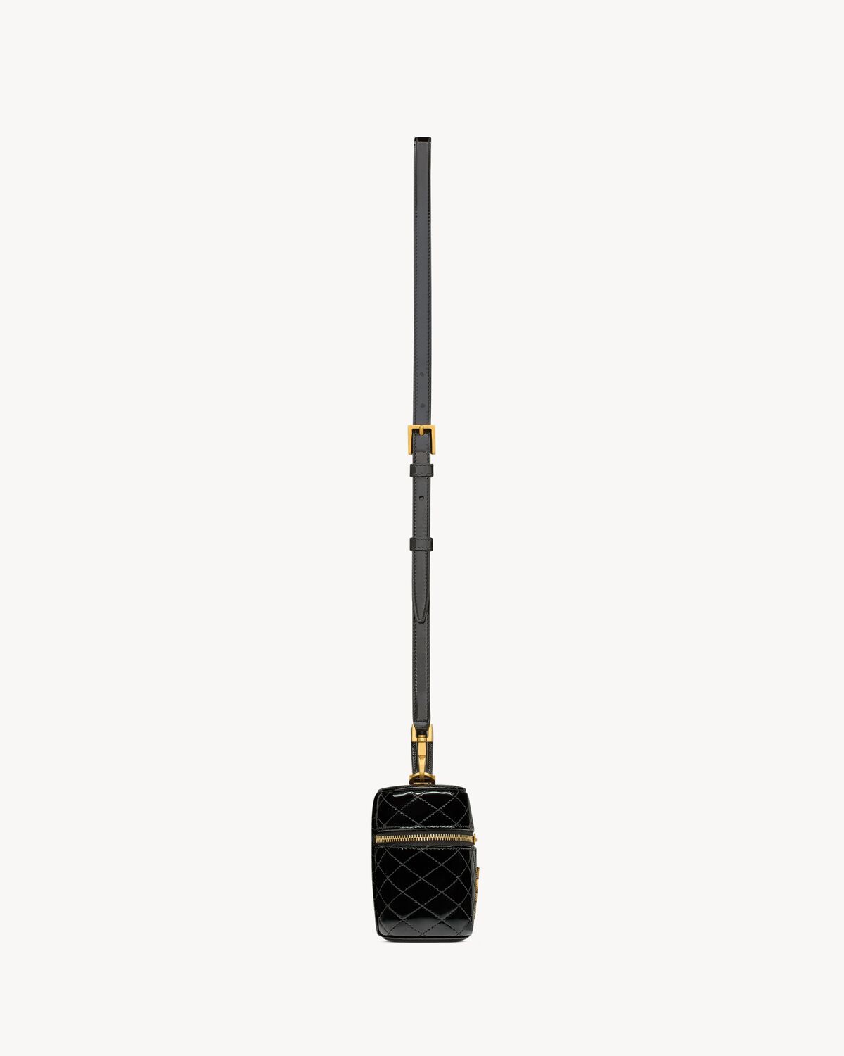 Zip-around vanity bag decorated with the CASSANDRE and diamond-quilted overstitching.