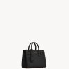 SPACIOUS AND LEATHER-LINED, IT IS DISTINGUISHABLE BY ITS ACCORDION SIDES, SNAP TABS AND BRASS PADLOCK.